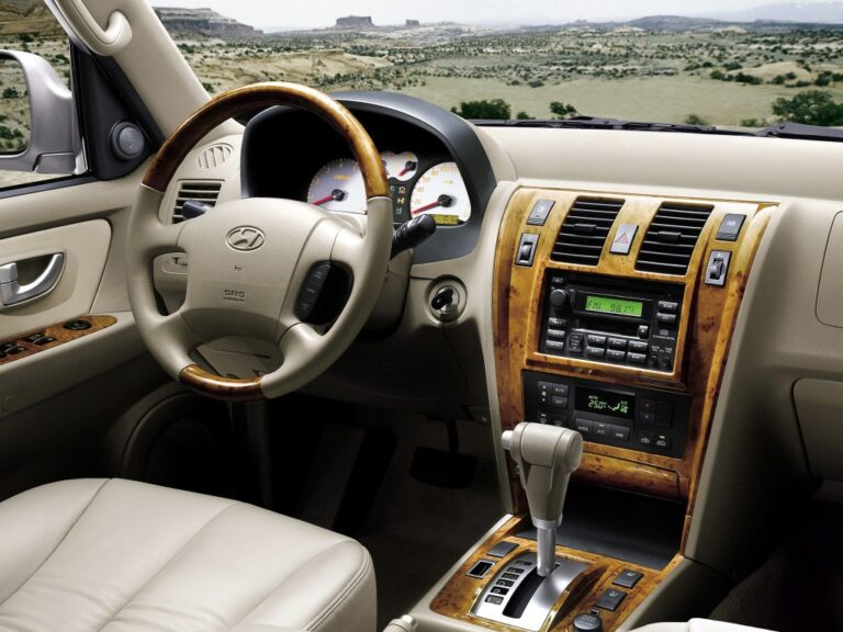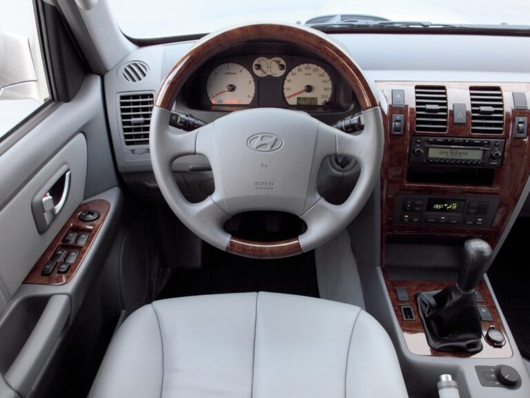 W środku, Terracan był już postrzegany jako przestronny pojazd, głównie dla czterech pasażerów. Trzem osobom może być ciasno z tyłu z powodu tunelu skrzyni biegów i szerokości wnętrza samochodu; to mały kompromis płacony za starą ramę. Jego ogromny bagażnik był łatwy do załadunku z tyłu przez szeroką klapę bagażnika lub od wewnątrz, dzięki dzielonemu tylnemu siedzeniu 60/40. W zależności od wersji wyposażenia i opcji, kierownica miała kilka przycisków do obsługi systemu audio. Producent intensywnie pracował nad integracją magnetofonu stereo i odtwarzacza CD w centralnej konsoli, zastępując starszy model o wyglądzie z rynku wtórnego.