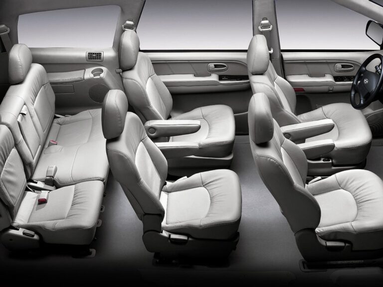 Hyundai zainstalował trzy rzędy siedzeń, mieszczące do ośmiu pasażerów, ale oferował także wersję z siedmioma miejscami w konfiguracji 2-2-3. Środkowy rząd mógł się pochylać i składać, aby zrobić miejsce dla pasażerów w ostatnim rzędzie. Z przodu, wysoka pozycja siedzenia dawała pewne poczucie bezpieczeństwa. Krzywoliniowy design deski rozdzielczej, przypominający SUV-a, miał centralny panel, w którym umieszczono sterowanie klimatyzacją, system audio oraz dźwignię zmiany biegów.