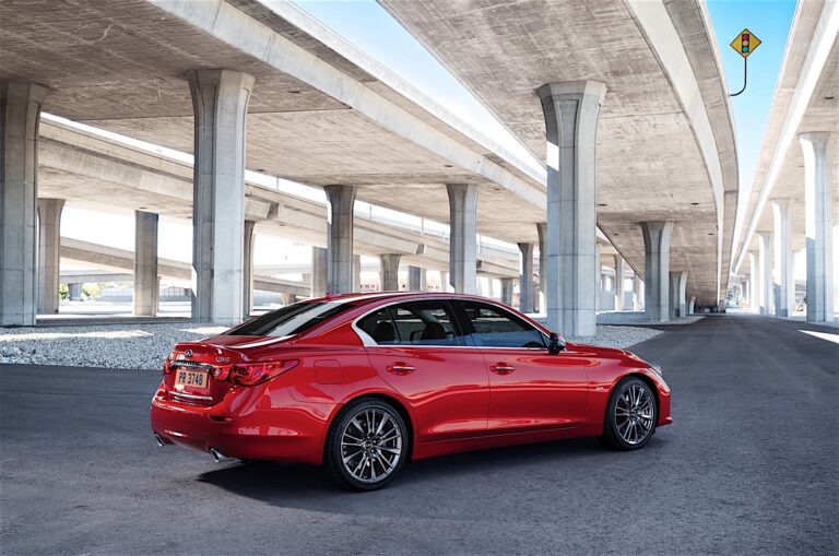 Modele Infiniti Q50 wyposażone w nowy 3.0-litrowy silnik V6 z podwójną turbosprężarką o mocy 400 km noszą oznaczenie Q50 Red Sport 400 i mają unikalne, osadzone co 19 cali aluminiowe obręcze i opony letnie 245/40R19 z przodu oraz 265/35R19 z tyłu, a także unikalne końcówki wydechu. Te zmiany pomagają podkreślić osiągi samochodu i dodają mu agresywnej, pewnej aury.