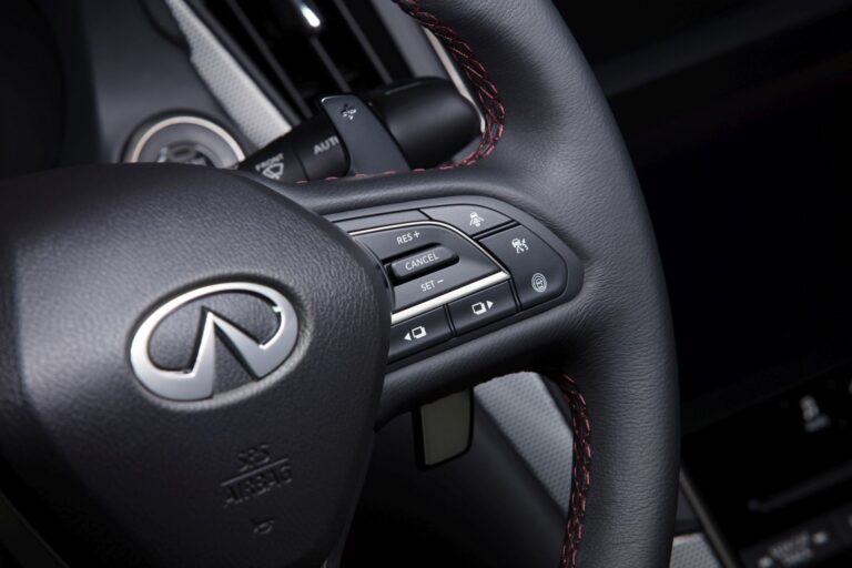 Projektanci Infiniti włączyli również podejście inspirowane wydajnością nowego Q50 do kabiny, czerpiąc z coupe Q60. Nowa kierownica zawiera uformowane miejsca na kciuki kierowcy, a także umożliwia intuicyjny dostęp do przekształconych łopatek do zmiany biegów umieszczonych na kierownicy. Nowy, sportowy uchwyt zmiany biegów z materiału skórzanego – podobnie jak panel instrumentów – ma również podwójne przeszycia i otoczony jest nowym chromowanym wykończeniem oraz zawiera wbudowane logo Infiniti.