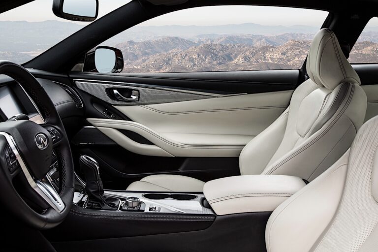 Wysoko wyprofilowane, mocno podparte siedzenia podkreślają doznania z kontroli jazdy w Q60. Wysoce ergonomiczne siedzenia są zaprojektowane, aby zapewnić większe wsparcie dla ud, lędźwi i boczne, utrzymując pasażerów na miejscu podczas bardziej entuzjastycznej jazdy. Siedzenia z charakterystycznym dla Infinitiego „wsparciem kręgosłupa” zostały starannie zaprojektowane, aby dopasować się do krzywizny kręgosłupa, zapewniając stały poziom wsparcia i minimalizując ucisk na dolne i górne mięśnie pleców. Wspierające siedzenia zmniejszają krzywiznę kręgosłupa, którą wiele tradycyjnych siedzeń zmusza pasażerów do przyjęcia, z bardziej równomiernym wyrównaniem między klatką piersiową a miednicą, podczas gdy rozległe wsparcie górnej części ciała równomiernie rozkłada wagę pasażerów przez całą szerokość siedzenia.