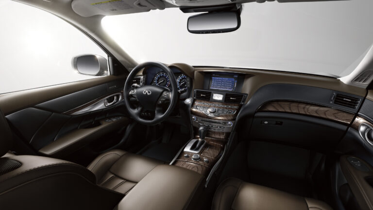 Wnętrze oszałamiającego wyglądu zewnętrznego koncentruje się na osobie prowadzącej pojazd. Celem wnętrza Infiniti Q70 jest zaprezentowanie eleganckiego, a jednocześnie funkcjonalnego projektu, który łączy sztukę z precyzją, komfort z innowacją – wszystko w celu poprawy osiągów jazdy i przyjemności pasażerów.