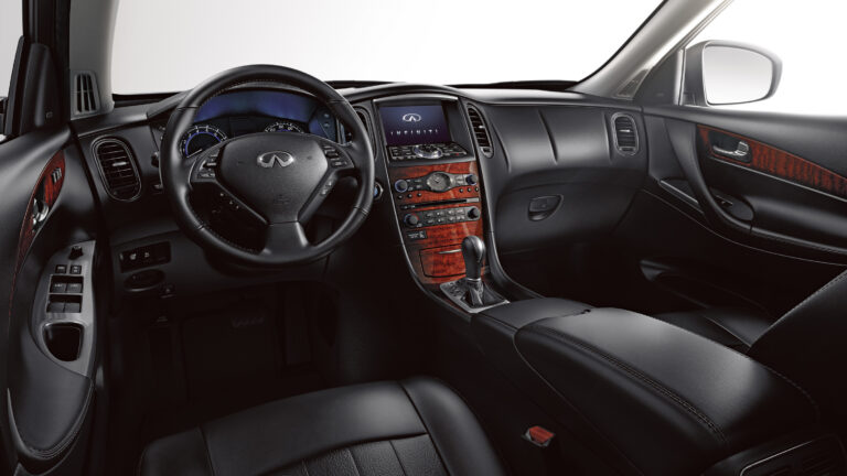Wnętrze było podobne do większości modeli Infiniti, z podgrzewanymi skórzanymi fotelami, skórzanym podłokietnikiem, uchwytami na kubki oraz klasycznym analogowym zegarem. Opcjonalnie wnętrze mogło łączyć skórę z drewnem, co dodawało luksusowego charakteru.