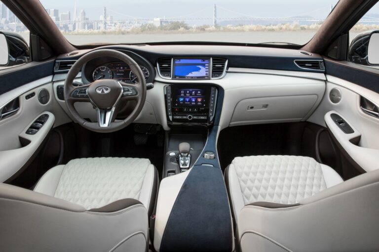 Niezrównana przestrzeń wewnętrzna, artystyczne zastosowanie materiałów wysokiej jakości oraz zaawansowane rzemiosło sprawiają, że wnętrze jest tak samo przytulne i komfortowe, jak elastyczne. Skoncentrowane na kierowcy, ale myślące również o pasażerach, QX50 z 2019 roku oferuje zestaw technologii, które poprawiają doświadczenia z jazdy. Asymetryczny układ i spokojna, połączona atmosfera zaprojektowane są z myślą o zaspokojeniu różnych potrzeb kierowcy i pasażerów.