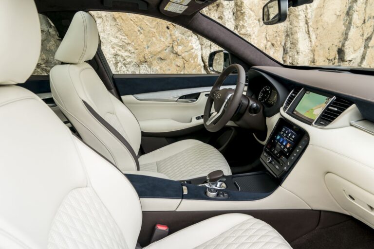 Kabina oferuje niezwykłą przestrzeń, a przesuwana tylna kanapa zwiększa elastyczność kabiny i bagażu, tworząc tylnią przestrzeń na nogi, która ma być najlepsza w swojej klasie. Pojemność bagażnika zwiększa się z 31,6 cu ft (895 litrów SAE) do 37 cu ft (1,048 litrów SAE), gdy tylna kanapa przesuwa się do przodu i do tyłu, a złożone tylne siedzenia tworzą 60 cu ft (1,699 litrów SAE). Przy wszystkich miejscach zajętych QX50 pomieści trzy torby golfowe lub wózek przechowywany wzdłuż, z miejscem na dodatkowy bagaż. Przestrzenie do przechowywania pod podłogą pozwalają właścicielom schować inne przedmioty z widoku.