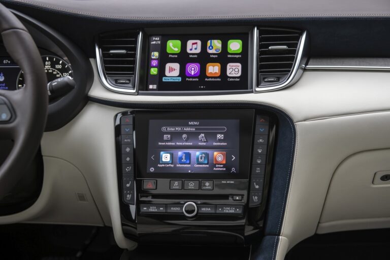 System infotainment QX50 z 2021 roku wyposażony jest w podwójne wyświetlacze HD INFINITI InTouch™, z górnym 8-calowym i dolnym 7-calowym ekranem LCD dotykowym VGA. Integracja Apple CarPlay® oraz Android Auto™ jest również standardowa we wszystkich poziomach wyposażenia QX50. Hotspot Wi-Fi jest standardowy na rok 2021.