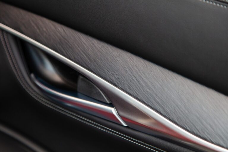 W wersjach Infiniti QX55 LUXE i ESSENTIAL, ciemne wykończenie z szczotkowanego aluminium rozciąga się wzdłuż deski rozdzielczej i drzwi, co zapewnia bogatą teksturę dla kierowcy i pasażera. W wersjach QX55 SENSORY, eleganckie czarne naturalne wykończenie z klonu otwartego poru przepływa przez kabinę, z drobnymi, naturalnymi tonami, które, w połączeniu z semi-anilinową skórzaną tapicerką w kolorze Monaco Red/Graphite, harmonijnie łączą wyraziste i organiczne tematy.
