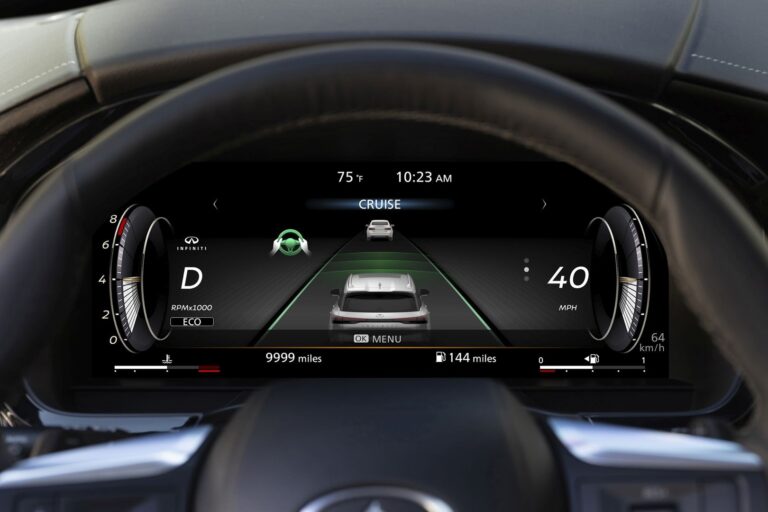 Dodatkowo, wszystkie modele Infiniti QX60 wyposażone są w nowy interaktywny ekran dotykowy Infiniti InTouch™ o przekątnej 12,3 cala, który oferuje infotainment z bezprzewodową kompatybilnością Apple CarPlay i Android Auto opartego na USB. Opcjonalny wyświetlacz Dynamic Meter o przekątnej 12,3 cala umieszczony przed kierowcą wyświetla wyraziste informacje, takie jak prędkość czy nawigacja, i może być połączony z ostrym wyświetlaczem head-up o przekątnej 10,8 cala.