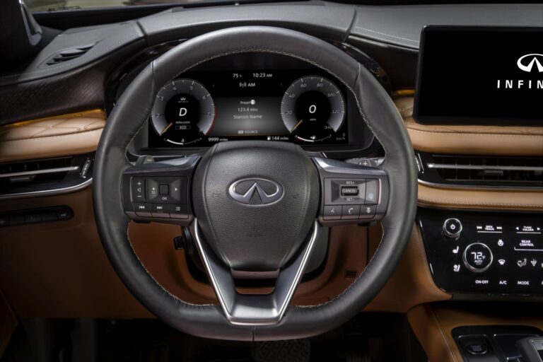 „Nowa 2022 Infiniti QX60 to nie tylko ładna twarz; to nasz najnowocześniejszy SUV,” powiedział Rigaux. „Ulepszyliśmy technologię wnętrza, aby była dostępna i inteligentna, począwszy od naszego imponującego interaktywnego wyświetlacza 12,3 cala InTouch i dynamicznego wyświetlacza meter.”