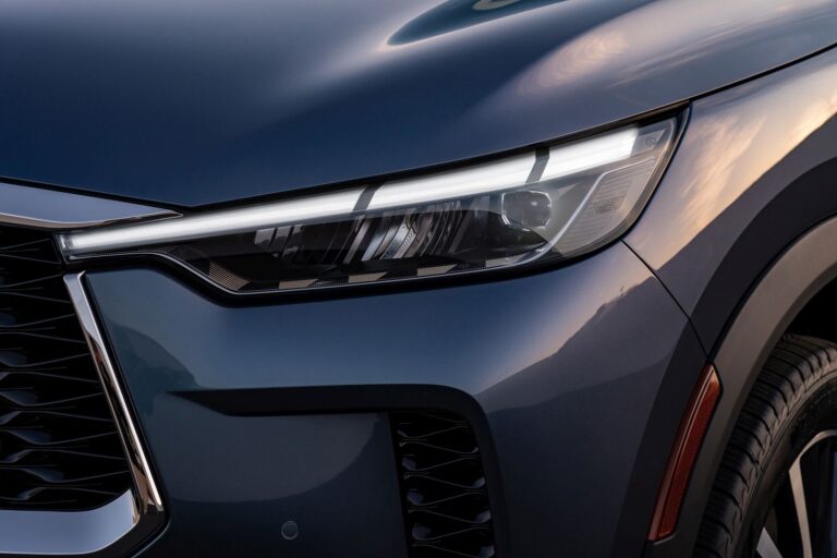 W nowej 2022 Infiniti QX60 projektanci stworzyli nową ekspresję dla premium marki, łączącą potężną atletyczność z harmonią i prostotą. Połączenie to stanowi nowy znak rozpoznawczy w języku projektowania Infiniti, podkreślony dostępnym, niezwykłym odcieniem Moonbow Blue, który odtwarza głębokie niebieskie i fioletowe odcienie otaczające letnie niebo o zmierzchu.