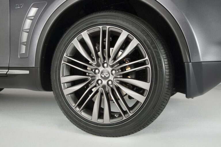 Każdy QX70 jest standardowo wyposażony w 18-calowe aluminiowe koła o 10 szprychach, zamontowane na oponach całorocznych 265/60R18. Pakiet Sportowy oferuje 21-calowe koła Enkei z ciemnym wykończeniem aluminiowym o sześciu szprychach, zamontowane na oponach całorocznych 265/45R21, podczas gdy Pakiet Limitowany obejmuje 21-calowe koła aluminiowe o wieloośmioramiennym wykończeniu premium z oponami całorocznymi 265/45R21.