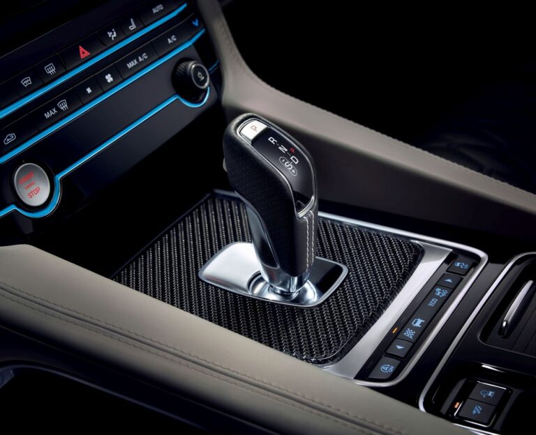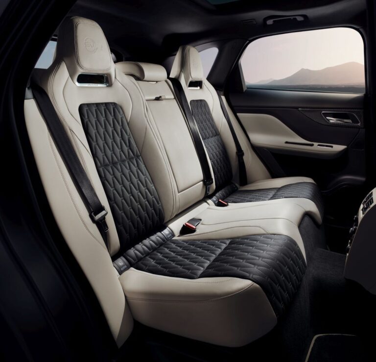 Wnętrze Jaguar F-Pace SVR jest wyposażone w smukłe, sportowe fotele przednie, które zapewniają lepsze wsparcie boczne, mają charakterystyczne pikowanie w kształcie rombów oraz wytłoczone logo SVR. Dodatkowo, unikalne tylne siedzenia nawiązują do mocno rzeźbionych wzorów z przodu, a sportowy charakter SUV-a podkreśla selektor zmiany biegów Sport Shift. Wreszcie, kierownica oznaczona logo SVR ma aluminiowe łopatki do zmiany biegów.