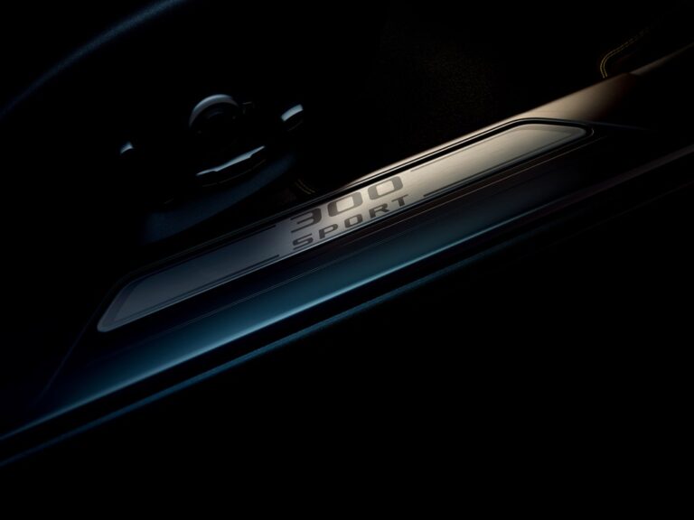 Specjalne akcenty designerskie kontynuują się również we wnętrzu, z żółtym kontrastowym przeszyciem na kierownicy, siedzeniach, obudowach drzwi oraz podłokietnikiem. Inne modyfikacje obejmują podświetlane progi z oznaczeniem 300 Sport, sportowe dywaniki, kierownicę z logo oraz tłoczone zagłówki.