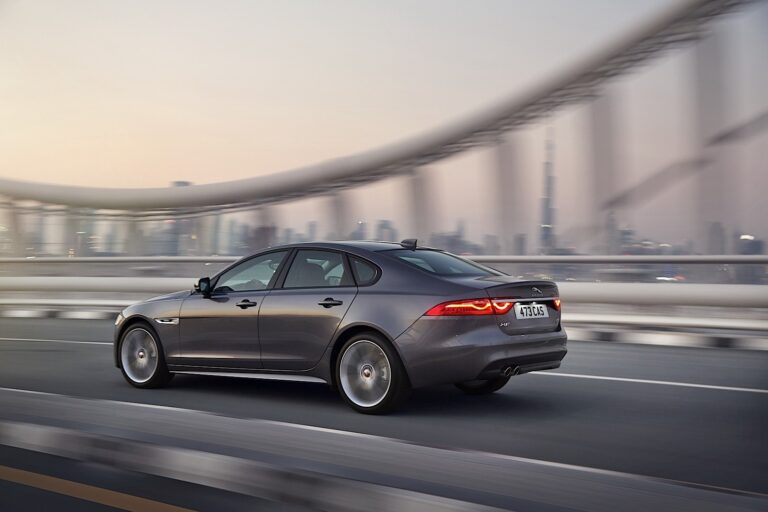 Z tyłu, lampy LED mają charakterystyczny wzór Jaguara z modelu F-TYPE – linia przecinająca okrągłe światło – również używana w XE. Tutaj jednak wzór jest powtarzany, tworząc wyraźną hierarchię z XE oraz rozpoznawalny wzór w nocy: każdy będzie wiedział, że to nowy XF.