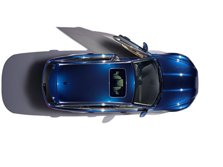 Z przodu osłony chłodnicy silne linie cechujące wznoszą się nad maską, następnie płynnie przechodzą w słupki A i na dach, definiując obszar ładunkowy, zanim opadają, tworząc nachylenie tylnej klapy i tylnego zderzaka. Linia dachu jest podkreślona polerowanymi relingami dachowymi (gdy są dostępne), które dodają zarówno funkcjonalności, jak i wyrazistego elementu stylu. Charakterystyczna grafika okien bocznych Jaguara jest tutaj pokazana w swojej najpiękniejszej i najbardziej wydłużonej formie, rozciągającej się ku tylnemu oknu niczym napięta struna, a podkreślona jasno polerowanym wykończeniem.