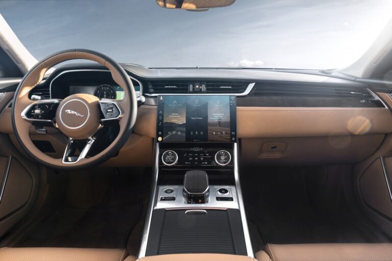 Nowe fotele mają szersze wyściółki, nowe opcjonalne funkcje masażu oraz zwiększoną powierzchnię ogrzewanych i chłodzonych obszarów. Na wszystkich standardowych zagłówkach znajduje się wytłaczany emblemat Jaguar Leaper, a zestaw metek tapicerskich 'Est.1935 Jaguar Coventry’ podkreśla dziedzictwo marki.