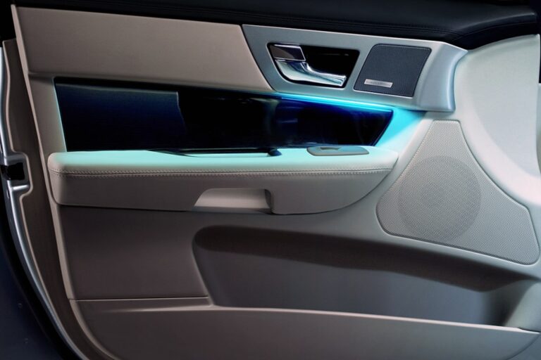 Nastrój oświetlenia w postaci niebieskiego fosforu lub 'halo’ odzwierciedla atmosferę, jaką można znaleźć w ulubionym, współczesnym barze lub restauracji. Ta sama technologia oświetleniowa jest również stosowana w odtwarzaczach MP3 i telefonach komórkowych do podświetlania klawiatur i przycisków. W Jaguarze XF, halo podświetlenie wokół paneli przełączników i konsoli JaguarDrive SelectorTM, przycisku rozruchu i elektrycznego hamulca ręcznego, daje miękkie światło, które wskazuje ich pozycje, nie rozpraszając kierowcy.