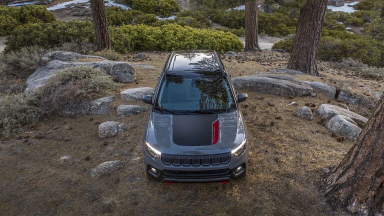 W profilu, producent dodał osłony nadkoli w kolorze nadwozia, podczas gdy jego poprzednik był dostępny wyłącznie z matowoczarnymi. Z modelu 2022, poziomy wyposażenia Compass różniły się jeszcze bardziej. Pojawił się nowy wybór 19-calowych felg aluminiowych w czarnym lub srebrnym wykończeniu dla wyższych wersji. W wersji Trailhawk, producent zamontował matowo czarny grill oraz charakterystyczną czerwoną i czarną naklejkę na masce. Oprócz tego, miała czerwone haki holownicze na dolnej części zderzaka, powyżej osłon podwozia. W przeciwieństwie do wersji Longitude i Limited, ta wytrzymała wersja była na 17-calowych kołach z bardziej solidnymi oponami terenowymi.