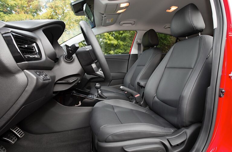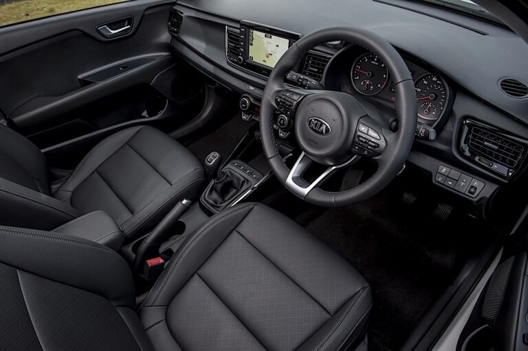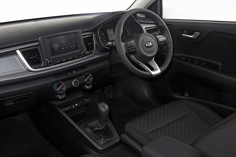 Nowy Kia Rio dostępny jest z wyborem czarnej lub szarej tapicerki materiałowej, lub z czarną lub szaro-skalowaną sztuczną skórą. 'Czerwony Pakiet’ dla Rio daje kupującym czarne fotele wykończone czerwoną sztuczną skórą w całej kabinie.