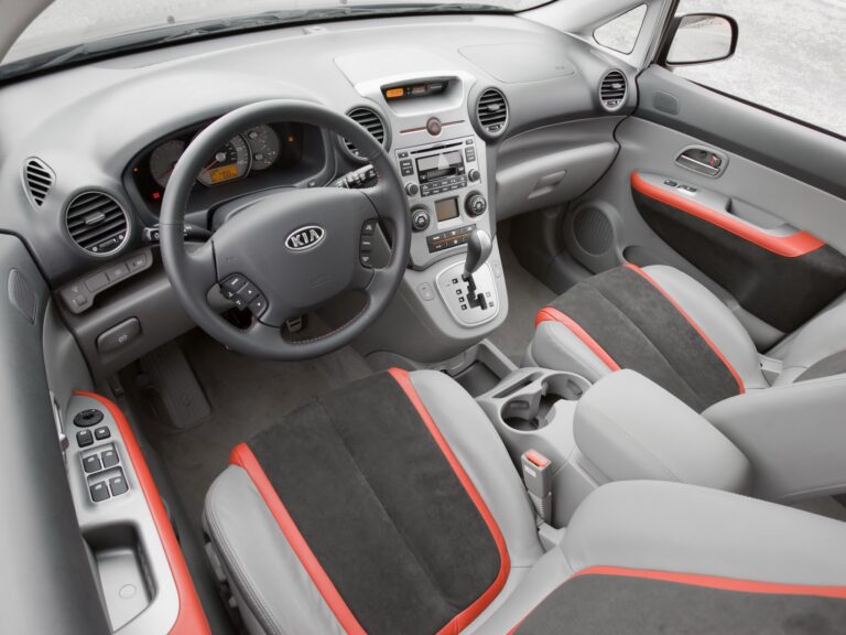 Wewnątrz Rondo od razu widać poczucie przestronności w przestrzeni na nogi i głowę. Standardowe konfiguracje siedzeń dla pięciu lub opcjonalnie siedmiu pasażerów z pewnością przypadną do gustu konsumentom szukającym funkcjonalności minivana, ale nie w dużych rozmiarach. Rondo jest nieco wyższe i szersze od swojego najbliższego konkurenta, Mazda5, oferując wygodne miejsca w pierwszym rzędzie z 41,6 calami przestrzeni nad głową i 41,3 calami na nogi. Przestrzeń w drugim rzędzie wynosi stałe 40,2 cala na nad głowę i 38,2 cala na nogi, niezależnie od układu pięciu lub siedmiu pasażerów. Opcjonalne siedzenie w trzecim rzędzie oferuje rozsądne 35,1 cala przestrzeni nad głową i 31,3 cala na nogi, co jest wystarczającą przestrzenią dla przeciętnie zbudowanego dorosłego. A przy opcji z trzecim rzędem, drugi rząd Rondo jest regulowany z przesuwanym zakresem do przodu i do tyłu o prawie stopę.