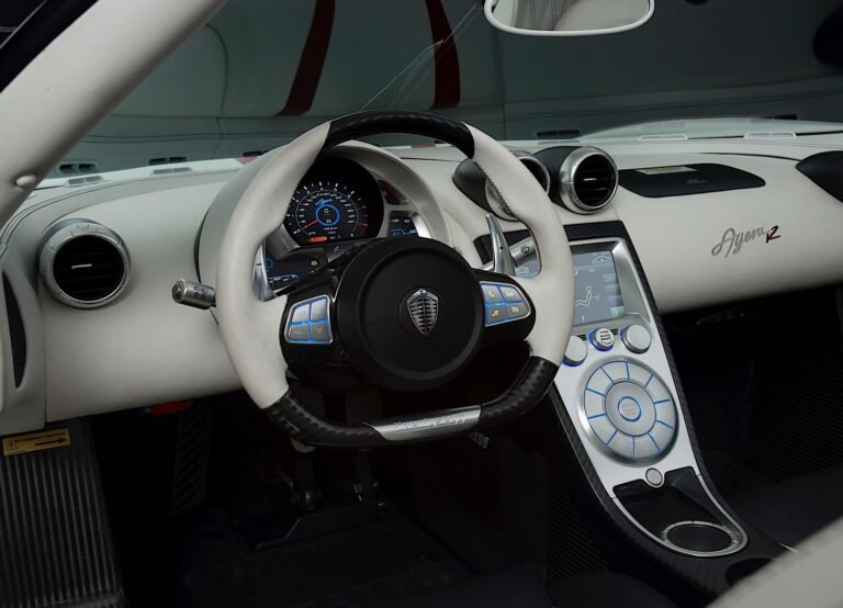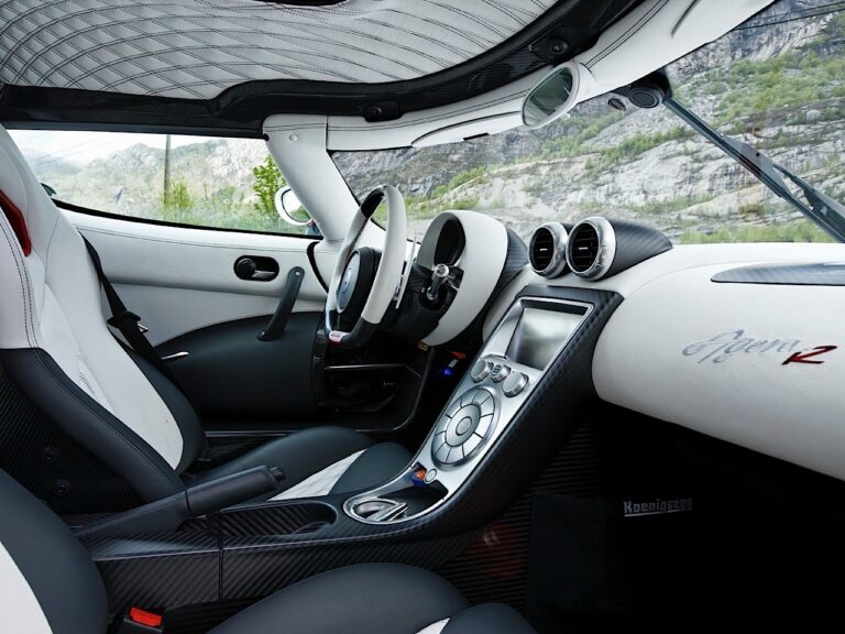 Wnętrze Agerę jest takie, jak żaden inny samochód. Żadne inne materiały poza tymi, które uznano za godne przez Koenigsegg, nie są dozwolone we wnętrzu. Oznacza to, że to, co możesz dotykać i widzieć wewnątrz Agerę, to tylko aluminium, włókno węglowe, metale szlachetne, alcantara i skóra anilinowa. Cała armatura jest wysoko spersonalizowana i zawiera wspaniale unikalne rozwiązania, takie jak Koenigsegg Ghost light, które sprawiają, że solidne aluminiowe przyciski lśnią symbolami zasilanymi przez diody LED, pojawiającymi się znikąd. Pierwszy taki przypadek w przemyśle samochodowym. Oświetlenie przebija się przez przyciski i powierzchnie z jednostkowego aluminium poprzez niemal niewidoczne mikrowywietrzniki, tworząc doskonałą widoczność symboli oraz bardzo czysty i stylowy wygląd, otoczony nowoczesnym centrum konsolowym z włókna węglowego.