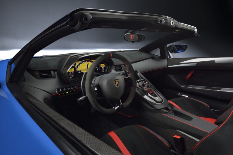 Nazwa mówiła sama za siebie: 750 KM i napęd na wszystkie koła. SV oznaczało Superveloce, co można przetłumaczyć jako Super szybki. Aby sprostać tej nazwie, inżynierowie Lamborghini dodali 50 KM do modelu Aventador LP 700-4 Roadster i zredukowali jego masę o 50 kg. To nie była tylko dieta, ale program treningowy. Choć usunięcie ALA (Lamborghini Active Aerodynamics) pozwoliło na zaoszczędzenie kilku kilogramów, to jednak wprowadzenie adaptacyjnego układu kierowniczego i amortyzatorów magnetoreologicznych dodało nieco masy.