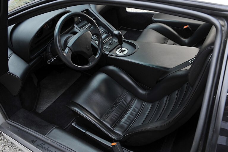 Wnętrze Diablo było ciasne, a właściciele o większych gabarytach często krytykowali sportowe fotele z wysokim podparciem. Środkowy panel był prawie poziomy, a szeroka konsola centralna pełniła rolę podłokietnika dla dwóch osób.