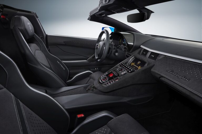 Środowisko kierowcy i pasażera jest równie wyrafinowane: konfigurowany cyfrowy wyświetlacz TFT pokazuje tryby jazdy oraz kontroluje łączność w pojeździe. Apple CarPlay zarządza komunikacją i rozrywką aktywowaną głosem, a system telemetrii Lamborghini dostępny jest opcjonalnie dla tych, którzy chcą celebrować ostatnie Aventadora na torze.