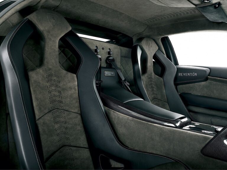 Oczywiście, tak wyrafinowany język formy wymaga również niezwykłego koloru. Dla 20 egzemplarzy Reventón, projektanci z Sant’Agata Bolognese stworzyli całkowicie nowy odcień: Reventón, średnio matowy zieleń/szarość bez typowego blasku. Jednak dzięki metalicznym cząstkom, w świetle dziennym ten odcień ma zaskakującą głębię.