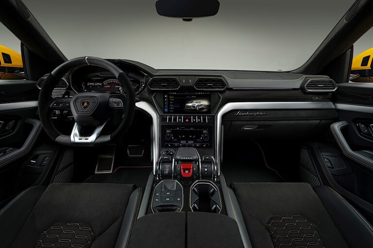 Lamborghini Urus wciela w życie zasady Lamborghini, że design, moc i dynamiczne możliwości samochodu sprawiają, że każdy kierowca powinien czuć się jak pilot. Lamborghini Urus jest technologicznie zaawansowany, ale intuicyjnie obsługiwany. Kierowca i pasażerowie mają wszystkie niskie, ale niezwykle komfortowe fotele sportowe, mocno osadzone w kabinie, a dla kierowcy, wszystkie sterowania w kabinie są w zasięgu ręki. Skierowane na kierowcę, smukły projekt Y deski rozdzielczej, przypominającej podwójne srebrne skrzydła i połączonej z wznoszącą się konsolą centralną, inspirowany jest LM002 oraz obecnymi super samochodami Lamborghini. Heksagonalna tematyka Lamborghini przewija się przez całe wnętrze, w elementach takich jak kratki wentylacyjne i klamki drzwi, a nawet w takich przedmiotach jak uchwyty na kubki i moduły poduszek powietrznych. Wielofunkcyjna, trzyramienna kierownica zawiera tłumik drgań, aby zwiększyć komfort w każdych warunkach jazdy. Włączniki wielofunkcyjne są intuicyjnie umieszczone na kierownicy, aby kontrolować system infotainment Lamborghini (LIS), w tym ustawienie samochodu, multimedia, telefon i nawigację.