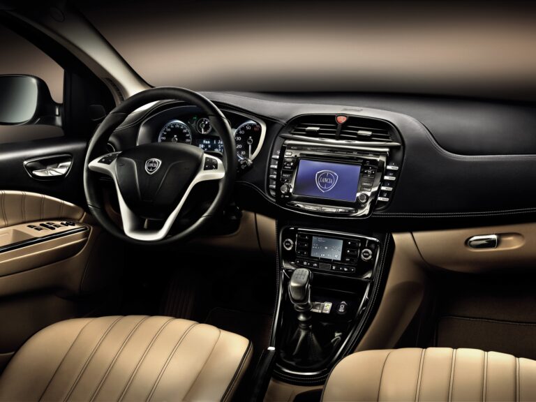 Ekstremalnie stylowe wnętrza uzupełniają przyrządy o wyraźnym wyglądzie high-tech: jednym z przykładów jest ładnie zaprojektowana centralna konsola, która wydaje się unosić jak jakaś fantastyczna, wysokotechnologiczna płyta na spodniej powierzchni – a białe podświetlenie konsoli podkreśla oryginalny wygląd kluczy 3D. A dodatkowo: wszystkie elementy używane do jazdy – konsola, kierownica, kontrola klimatu i funkcje multimedialne – mają tę samą kolorystykę i materiały z wysokotechnologicznym metalowym efektem, który jest widoczny na całym kokpicie. Chromowane detale na elementach sterujących oraz stylowa kierownica (przypominająca historyczną wersję z czterema ramionami) są wyrazem niezaprzeczalnej klasy Lancia.