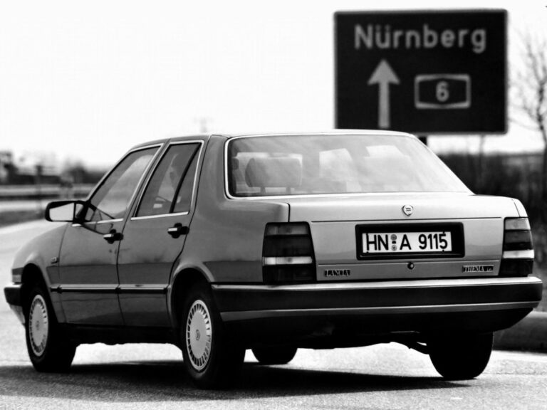 Z przodu producent pojazdów zachował kwadratowy ogólny kształt i zainstalował prostokątne reflektory oraz charakterystyczny dla Lanci podzielony grill. Zakrzywiony plastikowy zderzak zawierał zestaw świateł przeciwmgielnych, dostępnych opcjonalnie lub standardowo w zależności od wersji i poziomu wyposażenia. Chromowane klamki drzwiowe oraz lusterka w kolorze nadwozia potwierdzały premium klasę auta z jego boków. W wersji topowej 8.32 Lancia zamontowała chowany spojler na pokrywie bagażnika.