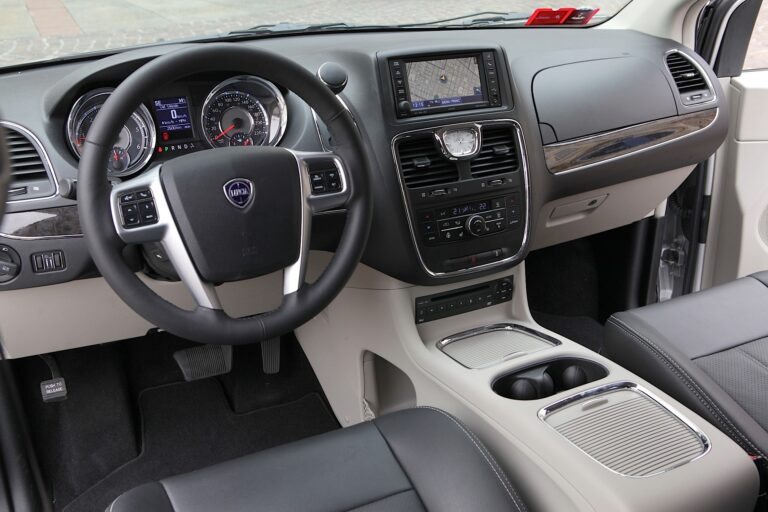 Wreszcie, Lancia Voyager oferuje wiele udogodnień, które naprawdę ułatwiają prowadzenie: od tempomatu, podgrzewanej kierownicy i regulowanych pedałów po przyciski obsługi radia na kierownicy, cyfrowy kompas i lusterko wsteczne z elektrokromatycznym szkłem.