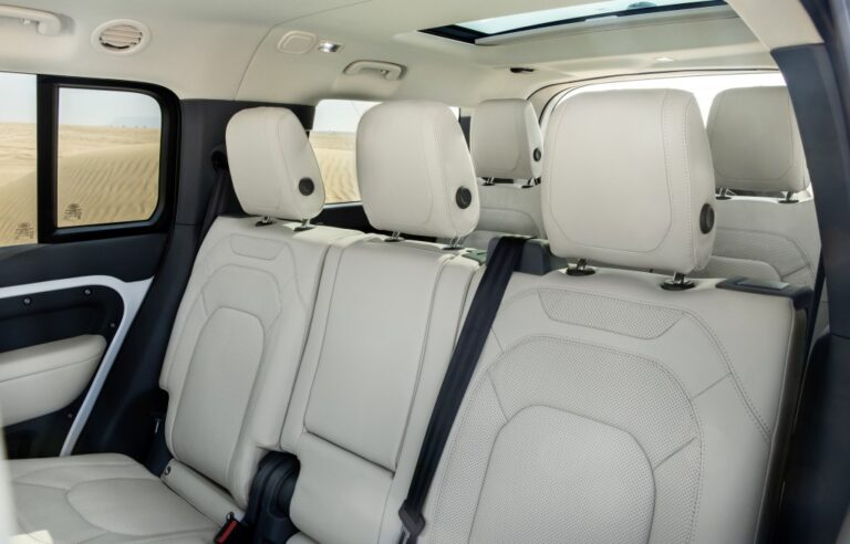 Elegancko wydłużony tył zapewnia nieograniczone możliwości w trzecim rzędzie, z wystarczającą szerokością, aby zapewnić komfortowe siedzenie dla trzech dorosłych, podczas gdy znany zarys Defendera zapewnia dużą przestrzeń nad głową we wszystkich trzech rzędach. Dodatkowe detale zapewniają komfort pasażerów w trzecim rzędzie, w tym podgrzewane siedzenia, wyściełane podłokietniki, przemyślane miejsca do przechowywania oraz gniazda USB-C do ładowania urządzeń w drodze. W kabinie zamontowano również dywaniki, aby dostosować się do unikalnego charakteru 130.