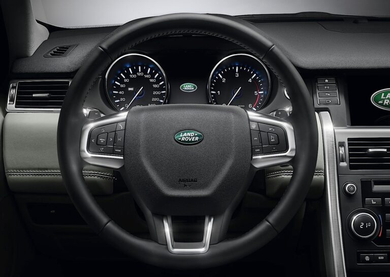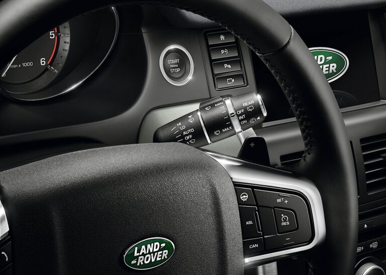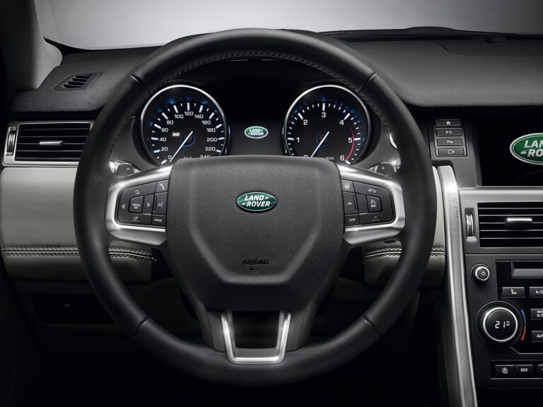 Trzypunktowa, wielofunkcyjna kierownica otacza łatwo czytelny zestaw wskaźników, z podwójnymi analognymi wskaźnikami głęboko osadzonymi w cylindrycznych obudowach, chroniących je przed odblaskami. 5-calowy kolorowy wyświetlacz TFT umieszczony pomiędzy głównymi wskaźnikami prezentuje kluczowe dane, takie jak poziom paliwa, pozycja biegu, temperatura chłodziwa i tryby Terrain Response®. Łopatki zmiany biegów pozwalają na manualne sterowanie dziewięciobiegową skrzynią automatyczną.