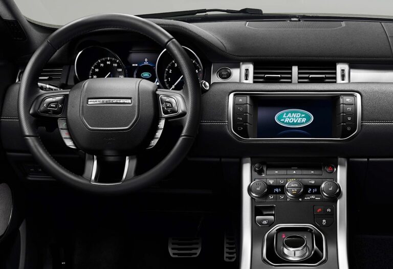 Wnętrze również zyskało nowe fotele i obudowy drzwi, nowy system infotainment dostępny za pośrednictwem ośmiocalowego ekranu dotykowego oraz nowe kolory i materiały, takie jak Lunar Ice, Vintage Tan i Dark Cherry (tylko Autobiography), które doskonale współgrają z wyrazistą architekturą Evoque.