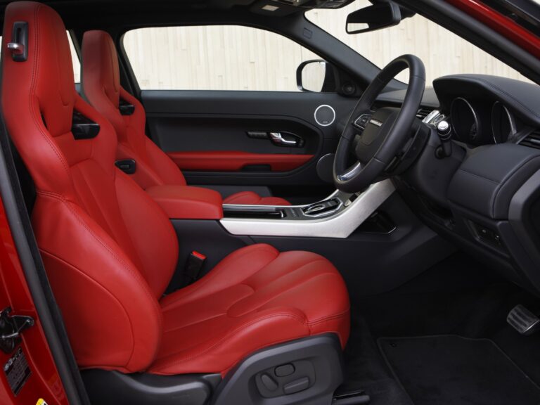 Unikalnie w segmencie kompaktowych SUV-ów, Evoque pozwala klientom na wybór bogato wyposażonego wnętrza, z miękką, luksusową skórą i starannie dopasowanym, podwójnym szwem, co nadaje luksusowy wygląd niemal każdej powierzchni deski rozdzielczej, drzwi i siedzeń.