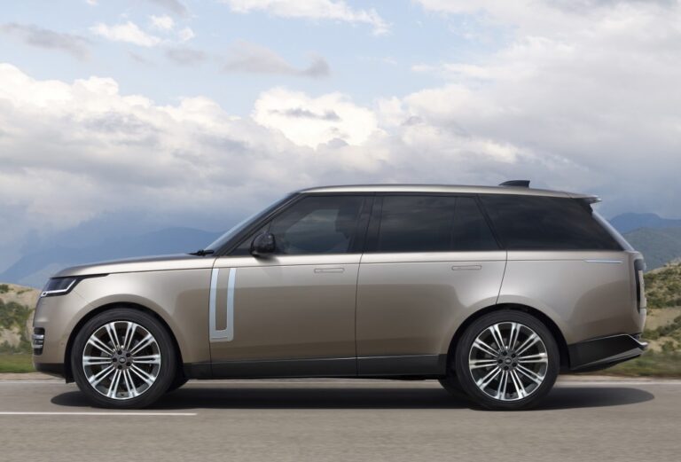Nowy Range Rover definiują trzy linie, które sięgają swoich korzeni przez pokolenia; opadająca linia dachu, mocna linia talii i wznosząca się linia progowa. Te charakterystyczne cechy łączą się z typowo krótkim przodem i nowym, wyróżniającym się tyłem w stylu łodzi – z praktyczną, dzieloną klapą bagażnika – tworząc elegancki profil, który odzwierciedla niezrównaną obecność Range Rovera.