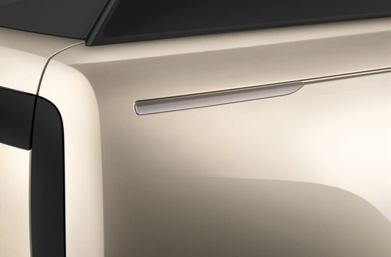 Nieprzerwana linia talii ukazuje dbałość Land Rovera o szczegóły, gdy zaokrąglony brzeg drzwi spotyka szybę w prosty, czysty sposób dzięki specjalnie zaprojektowanemu ukrytemu wykończeniu. Technologia wspierająca projekt łączy się z gładkimi szybami, ukrytym oświetleniem oraz precyzyjnym wykończeniem, tworząc wrażenie, że pojazd został wykonany z jednego kawałka materiału.