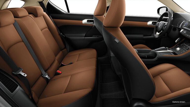 Wnętrze F Sport charakteryzuje się ekskluzywną tapicerką, ozdobami i wykończeniami. Tapicerka siedzeń została udoskonalona syntetycznymi skórzanymi bocznymi bolsterami i zagłówkami, tkaninowymi środkami oraz udoskonalonymi przeszyciami. Oferowana jest w 3 schematach kolorystycznych: czarnym, ciemno-różowym i oceanicznie niebieskim. Pełna tapicerka ze skóry jest również dostępna w wyborze z wykończeniem czarnym lub ciemno-różowym.