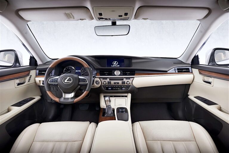 Wnętrze luksusowej kabiny było jednym z najlepszych w swojej klasie. Dzięki platformie z napędem na przednie koła połączonej z długim rozstawem osi, producent mógł zapewnić wystarczająco dużo miejsca na nogi dla pięciu pasażerów. Nawet ten siedzący na środku tylnej kanapy miał komfortowe warunki. Deska rozdzielcza oferowała zintegrowany ekran infotainment umieszczony na górze i otoczony materiałami najwyższej jakości. W przypadku zestawu wskaźników Lexus zachował analogowe tarcze, chociaż pojawił się także mały wyświetlacz TFT pomiędzy obrotomierzem a prędkościomierzem.