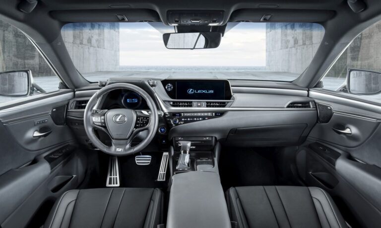 Podczas projektowania wyglądu i charakteru wnętrza kabiny ES, zespołem Kajino był ukierunkowany na koncepcję Wnętrza Przyszłości Lexusa, która łączy kierowczo-centryczny kokpit z przestronnym i komfortowym miejscem dla pasażera z przodu. Skupienie kierowcy na drodze z przodu utrzymane jest dzięki umiejscowieniu centralnego wyświetlacza, panelu instrumentów i wyświetlacza holograficznego w zwartym zespole w polu widzenia. Pasażerowie z przodu zyskują natomiast bardziej otwarte, przestronne i relaksujące środowisko.