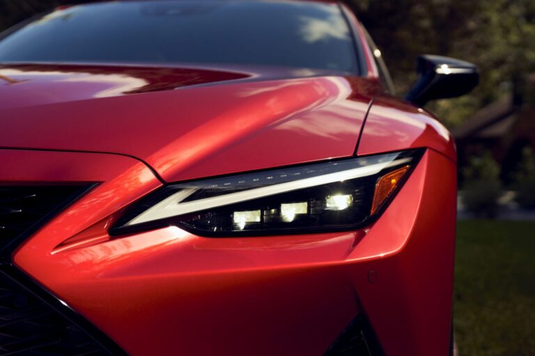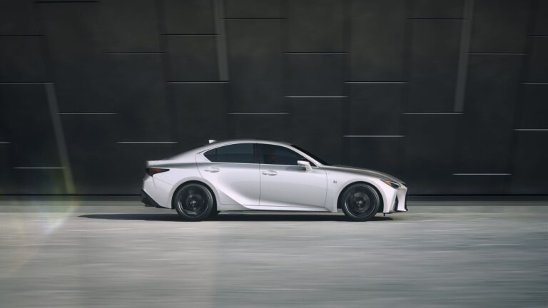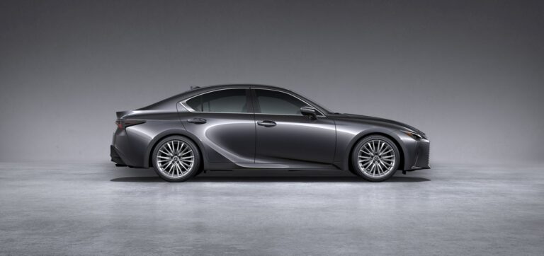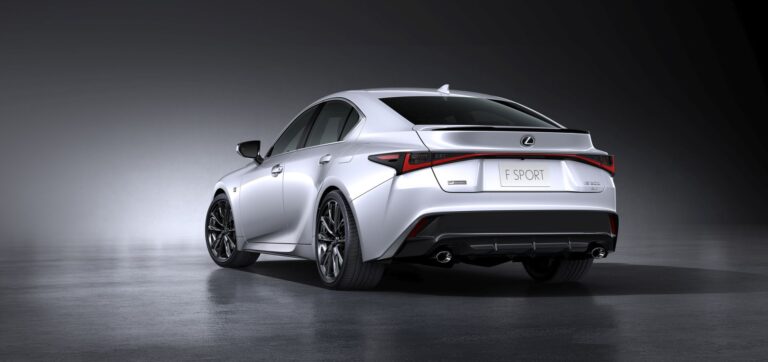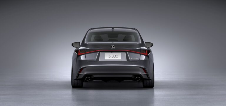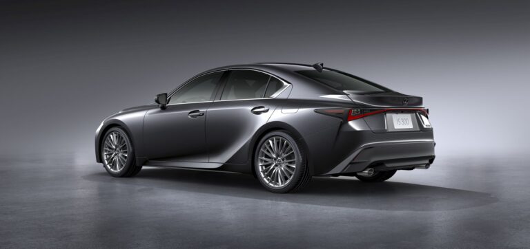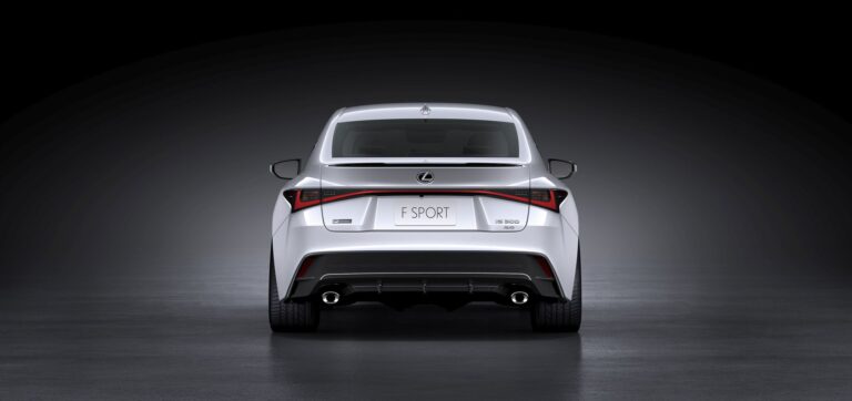 Nowa, odważna stylistyka zewnętrzna Lexusa IS 2021 nie tylko dąży do prowokacyjnego projektu, ale jego atletyczna sylwetka ma również symbolizować zwinne zmiany, które miały miejsce pod blachą. Nowy Lexus IS przywołuje niższe i szersze proporcje. Jest nieco szerszy, z muskularnymi błotnikami wystającymi, aby pomieścić i ulepszyć większe dostępne 19-calowe koła i wyższe opony. Szeroka i niska forma nawiązuje do naturalnie wysokiego poziomu osiągów jazdy, jaki posiada IS, ale smukłe linie są także uzupełnione wyraźnie agresywną ostrością wyrzeźbioną w liniach charakterystycznych na boku i ramionach.