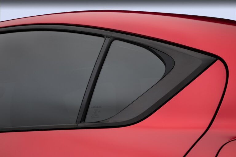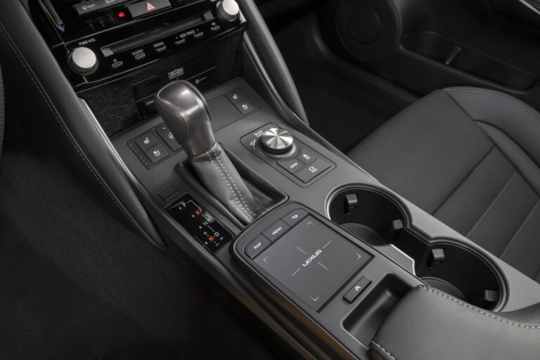 Modele F SPORT z DHP otrzymują unikalny tylny spojler z włókna węglowego i osłony lusterek bocznych, poduszkę kolanową konsoli centralnej z kontrastowym przeszyciem oraz klucz kartowy Lexusa.