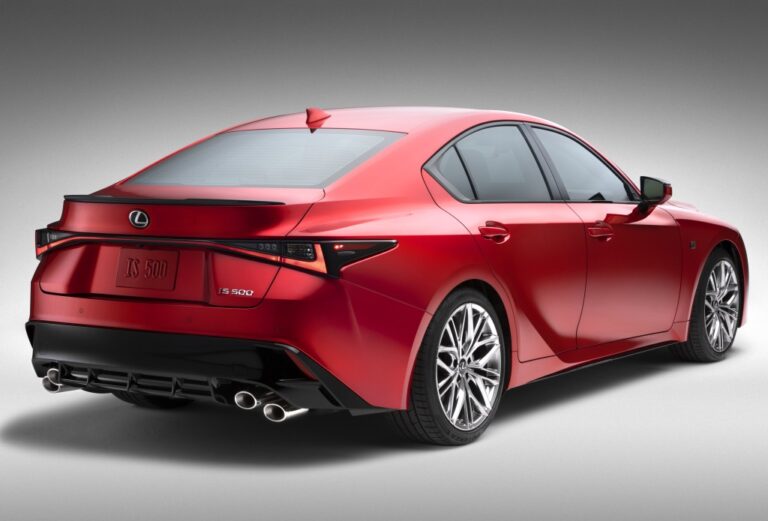 Linia modeli IS F SPORT została zrestrukturyzowana w roku modelowym 2021, ponieważ F SPORT będą oferowane tylko w modelu IS 350 napędzanym silnikiem V6 o pojemności 3,5 litra i mocy 311 koni. F SPORT charakteryzuje się wieloma wizualnymi i wydajnościowymi cechami, które wyróżniają go na tle innych, w tym unikalnym przednim zderzakiem z funkcjonalnymi ulepszeniami aerodynamicznymi, tylnym zderzakiem, grillem, tylnym spojlerem, listwami bocznymi i innymi. Wraz z 19-calowymi felgami F SPORT, unikalnym dekielkiem centralnym i większymi tylnymi oponami dla zwiększenia osiągów (265/35R19), są one również wyposażone w chłodny wlot powietrza z generatorem dźwięku oraz sportowy wydech i dyfuzor F SPORT. Ponadto, unikalne oznaczenia F SPORT zdobią boki i tył pojazdu.