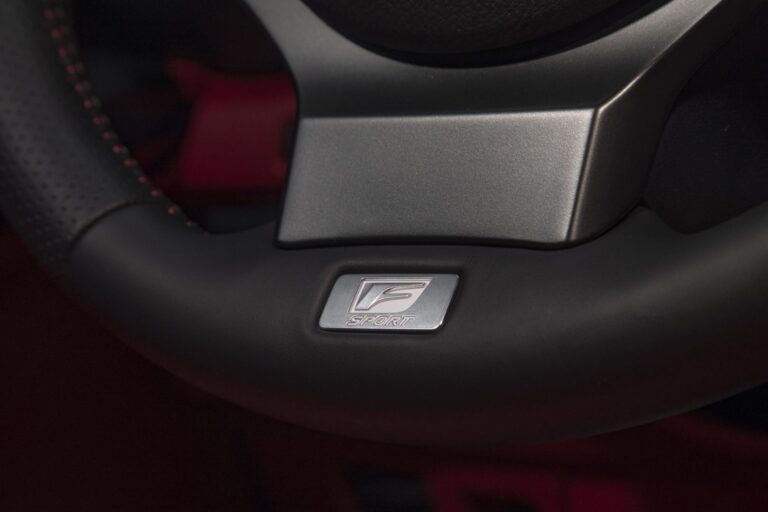 Nowe wykończenie zdobi każde drzwi w modelach F SPORT z graficznym wzorem wytłoczonych przecinających się linii, reprezentujących nową formę zdobnictwa Lexusa i rzemiosła Takumi. Ornamentalne wykończenie po raz pierwszy jest wykonane w malowanej na czarno metalicznej farbie, czarnym filmie geometrycznym lub unikalnym wykończeniu Ash, które jest ekskluzywne dla modeli F SPORT z Dynamic Handling Package. Akcenty w kolorze fortepianowym można znaleźć również na elementach powierzchni, tworząc atmosferę wnętrza, która jest zarówno dostojna, jak i sportowa. Standardowe opcje kolorystyczne wnętrza NuLuxe obejmują czarny, glazurowany karmel oraz czerwony Rioja. W pakietach F SPORT dostępne są opcje czarny, Circuit Red oraz dwukolorowy biały/czarny, podczas gdy pakiet Dynamic Handling F SPORT dostępny jest w czarnym lub czerwonym wnętrzu.