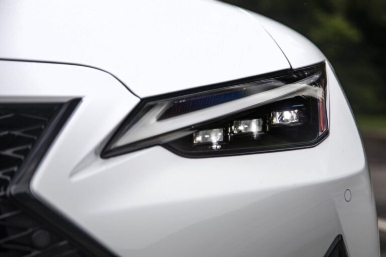 Nowe smukłe reflektory są zainstalowane w IS, które mają dzienne światła z wyraźnym, L-kształtnym znakiem, który biegnie wzdłuż osi bocznej tuż nad nowo opracowanymi kompaktowymi i lekkimi jednostkami lampowymi. Te nowe reflektory przyczyniają się do wyrażenia niskiego środka ciężkości poprzez nisko umiejscowione obszary wokół kraty, a dopasowane są przez obniżone linie charakterystyczne po bokach, które sięgają aż do tyłu bagażnika. Dostępne reflektory LED z trzema wiązkami także zostały zaprojektowane w sposób, aby uzupełnić niski profil maski.