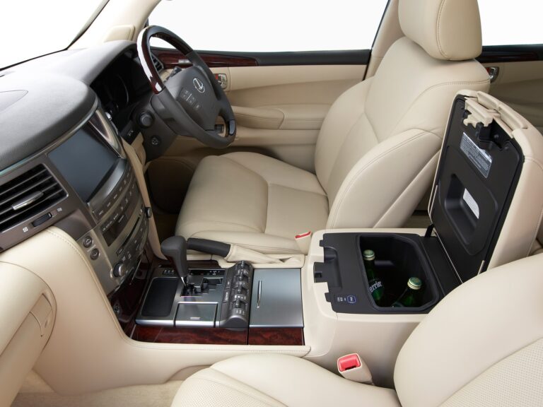 Wewnątrz Lexus był standardowo wyposażony w pełnopskórną tapicerkę dla wszystkich siedzeń. Z przodu, duża konsola środkowa mieściła system audio Mark&Levinson z maksymalnie 19 głośnikami oraz wbudowanym dyskiem twardym na około 2000 utworów, oferowanym jako opcja.