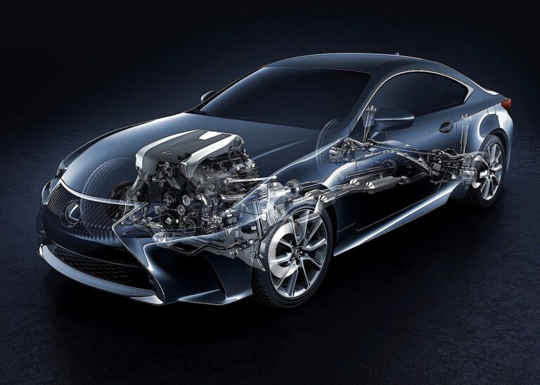 Tył platformy RC oparty jest na nowej generacji sedana sportowego IS, modelu, który już udowodnił swoje możliwości wydajnościowe i zwrotne w mocno konkurencyjnym segmencie. W centrum, gdzie struktura musiała zachować sztywność przy dwóch dużych otworach drzwiowych, Lexus czerpał z konstrukcji cabrio IS.