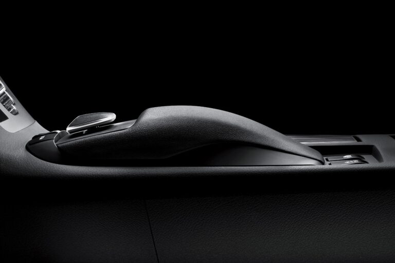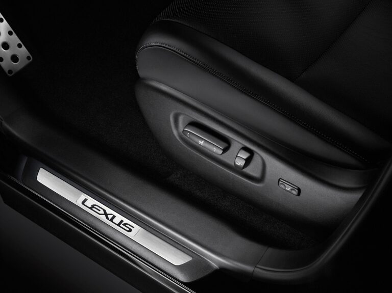 Wnętrze ekskluzywne dla F SPORT charakteryzuje się unikalnym schematem kolorystycznym w czerni i szarości. Oferuje gładką czarną tapicerkę skórzaną z białymi szarymi perforacjami i kontrastowymi szwami, wstawki w kolorze stali srebrnej oraz czarny sufit, aby nadać wnętrzu bardziej kokpitowy klimat i wspomóc koncentrację kierowcy.